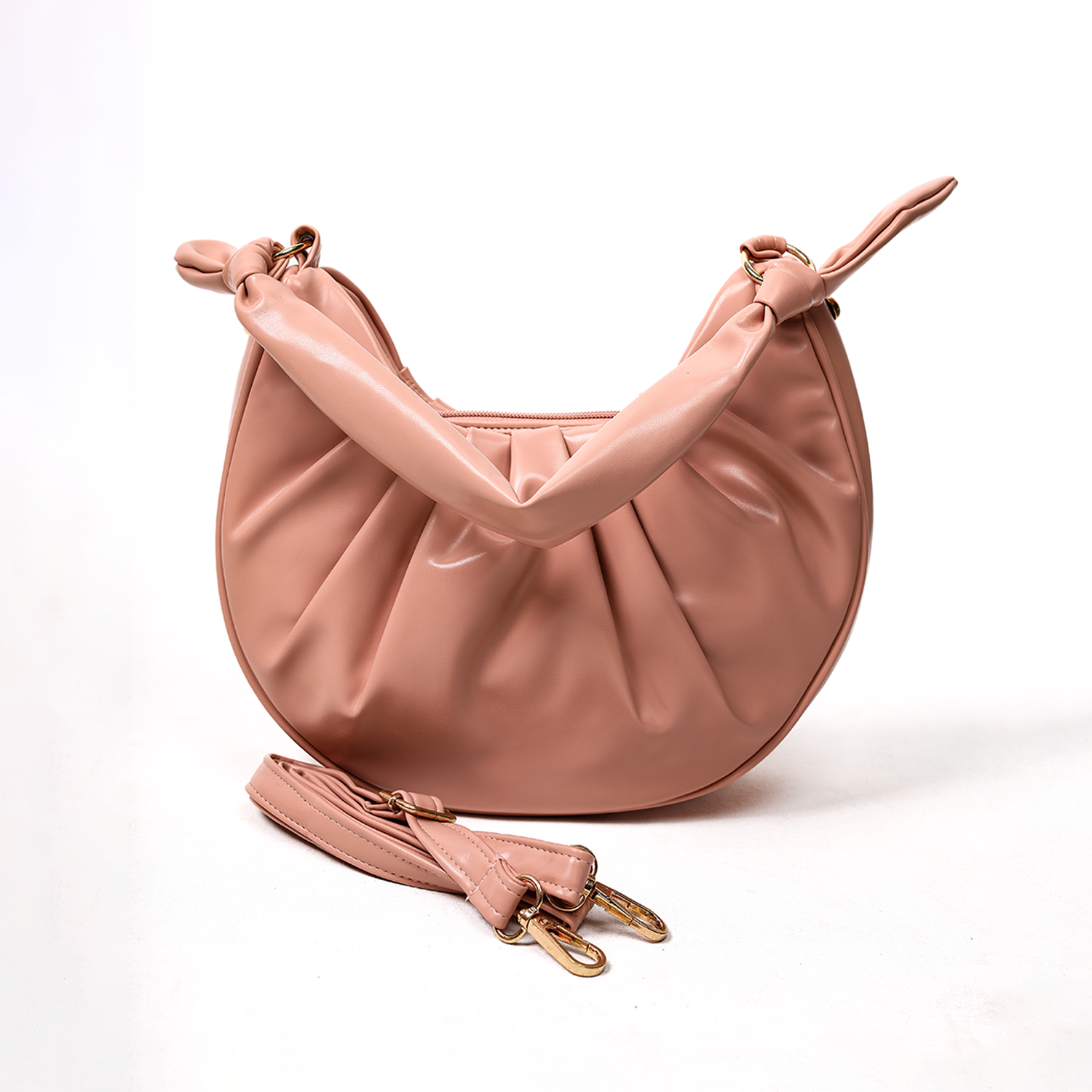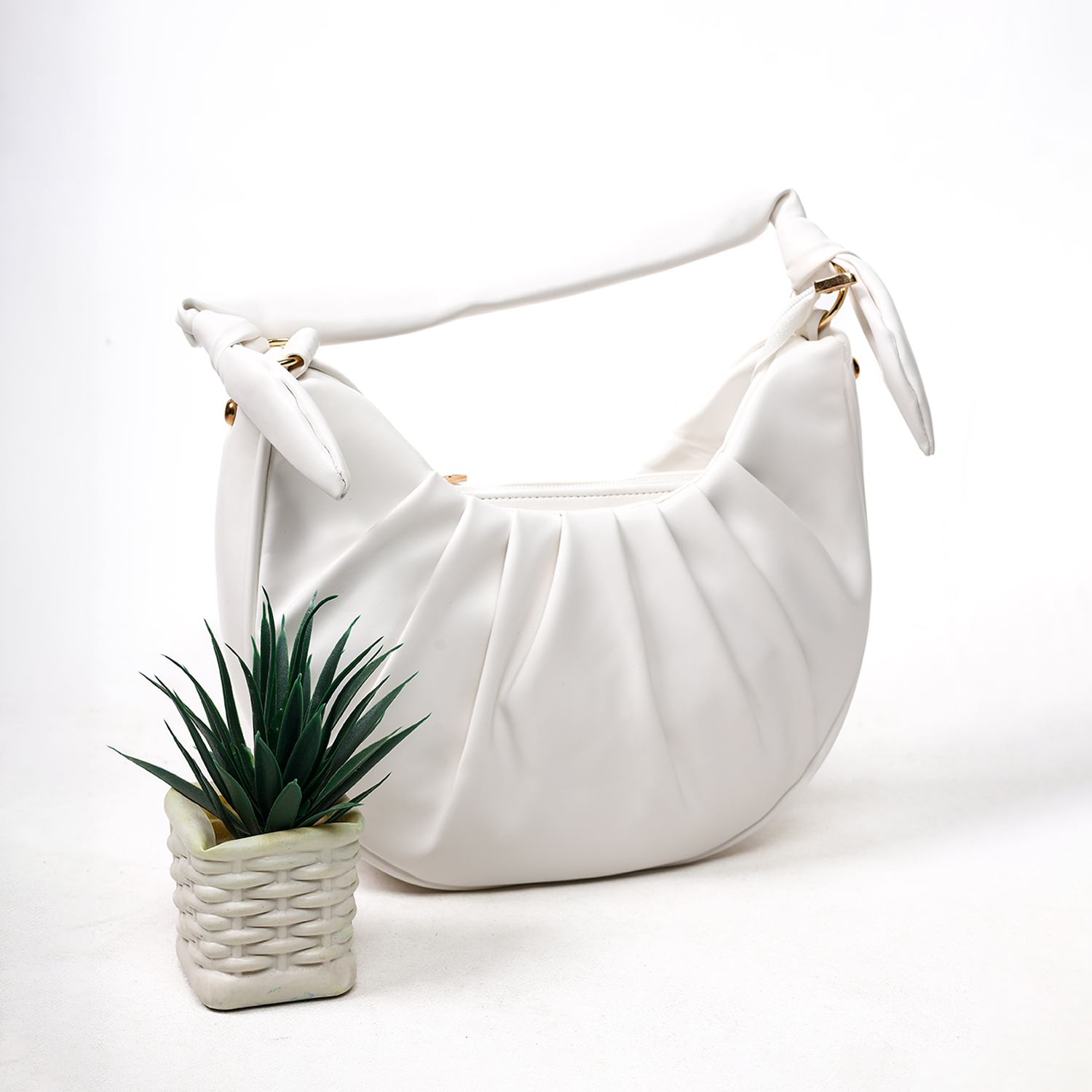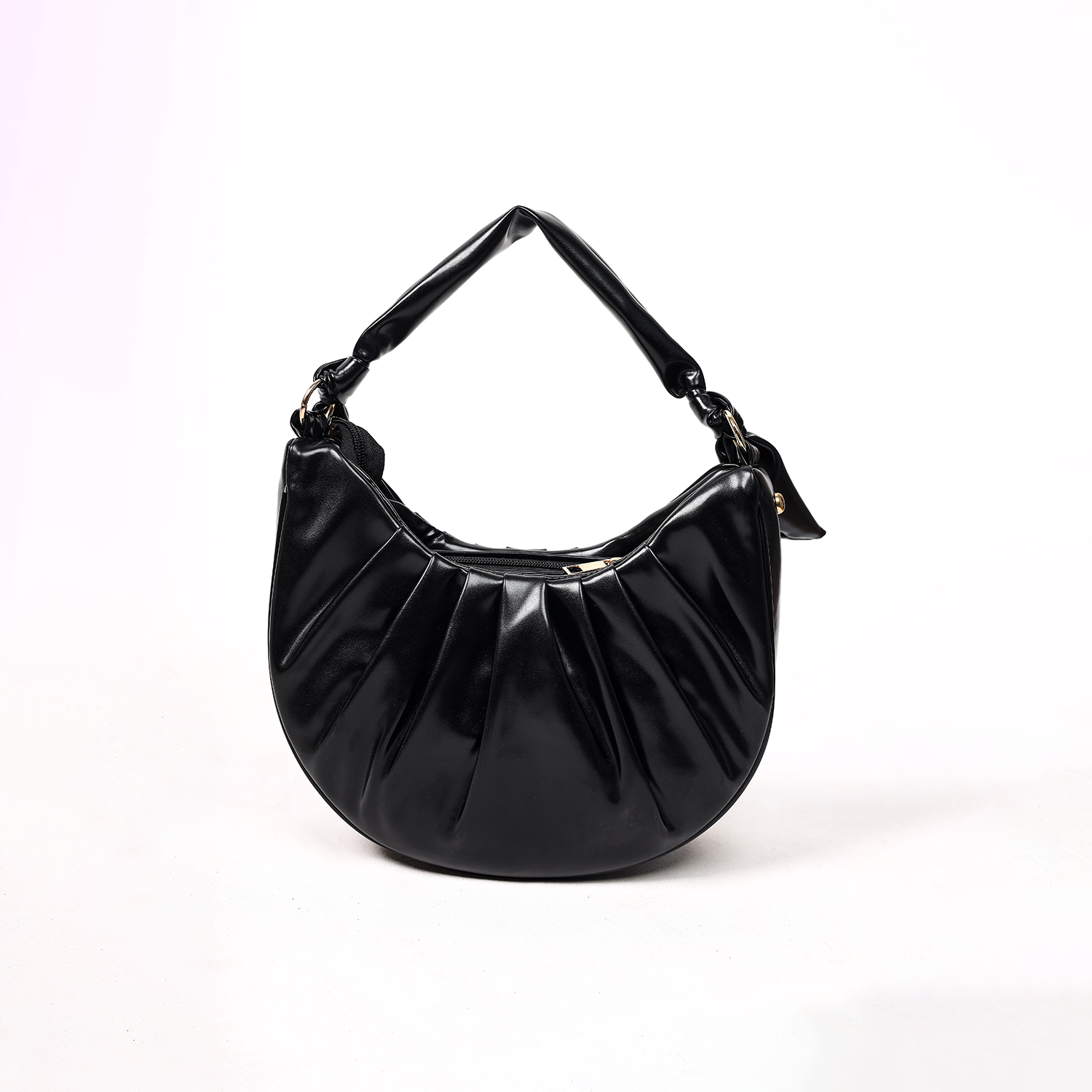 Design: Pleated with knotted handle.