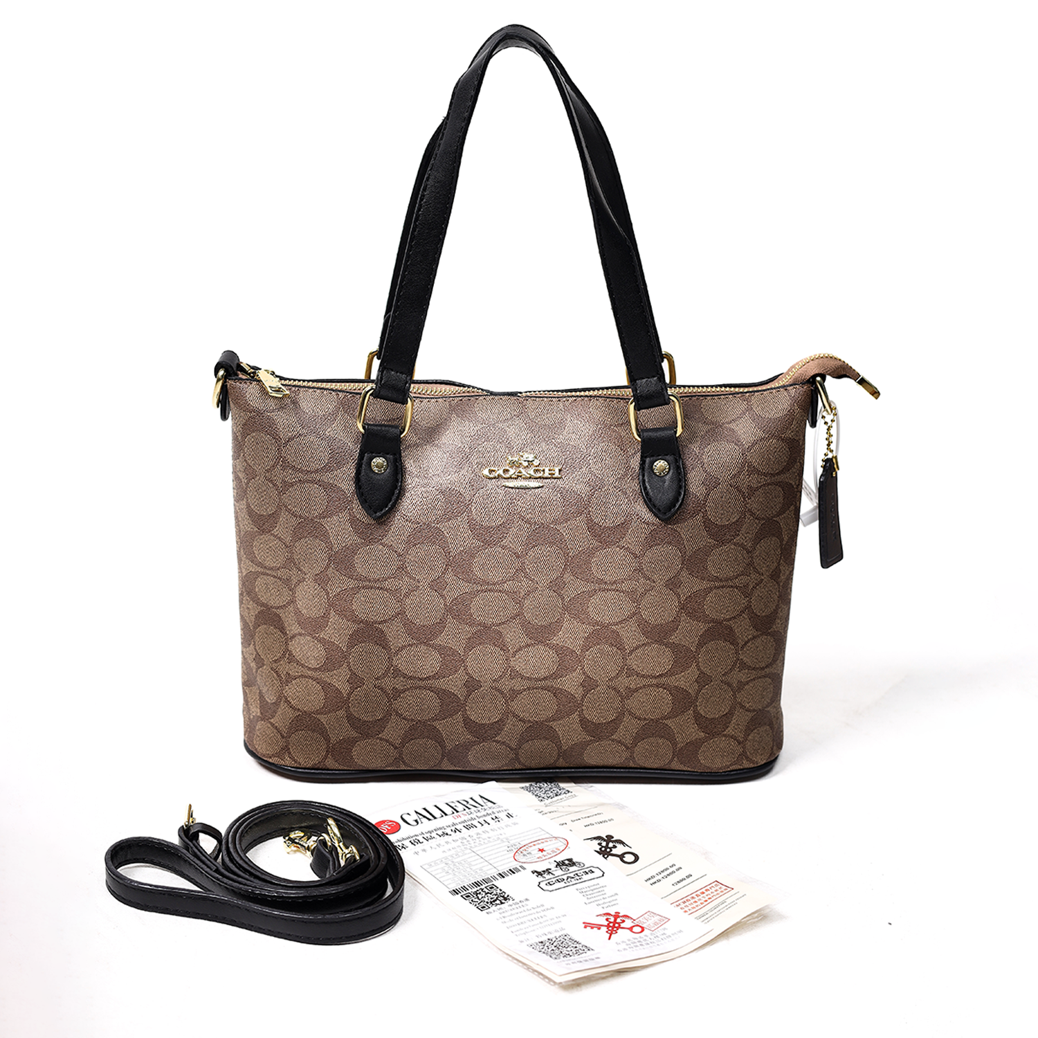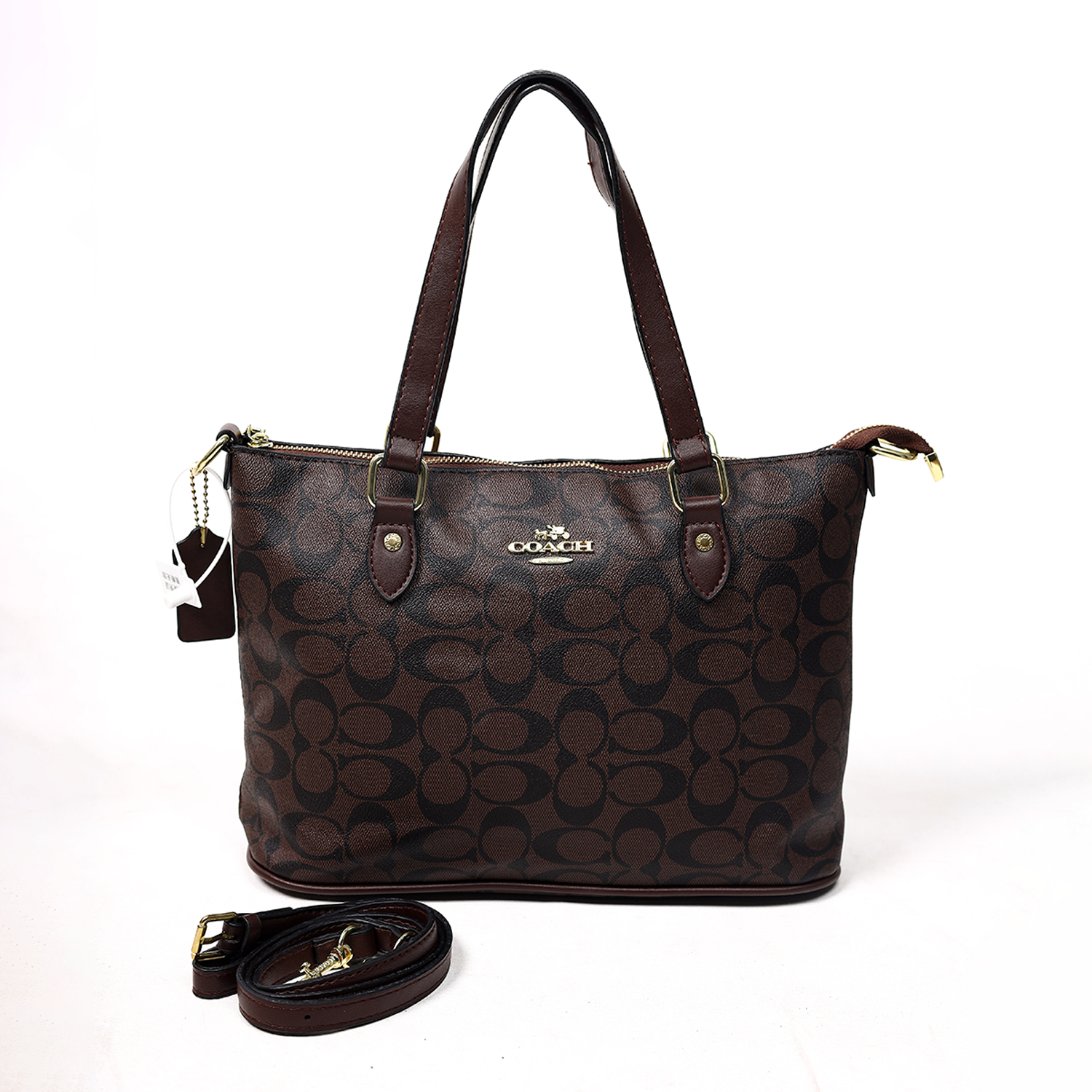 Design: Iconic Coach “C” monogram pattern in brown