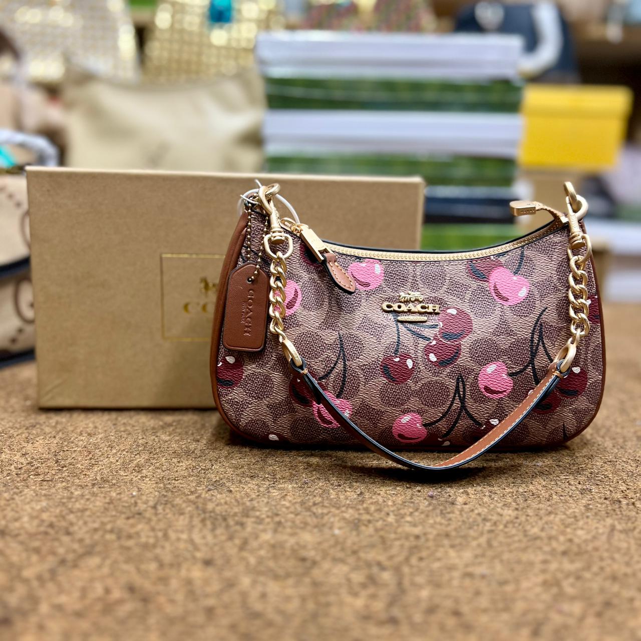 Upgrade your everyday style with the Coach Teri Shoulder Bag in Signature Canvas with Cherry Print, a perfect blend of luxury design and playful charm. Made from premium printed coated canvas, this designer shoulder bag features Coach’s signature craftsmanship with a fresh, eye-catching strawberry pattern.