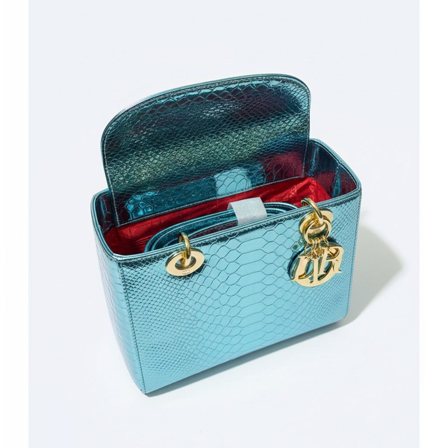 Christian Dior Metallic Python Lady Dior-Embossed Handbag
