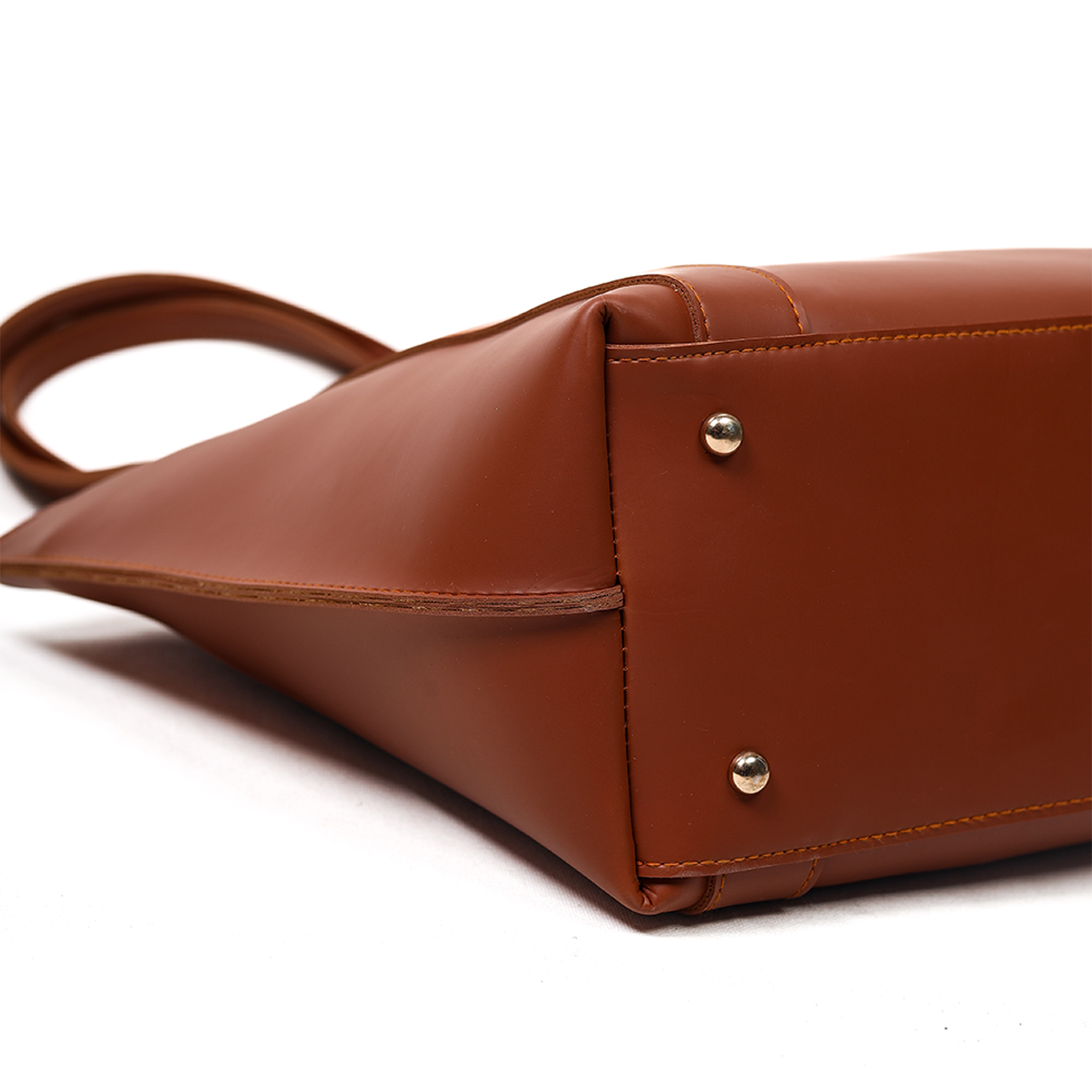 Hardware: Gold-tone metal accents on handle base for a refined look