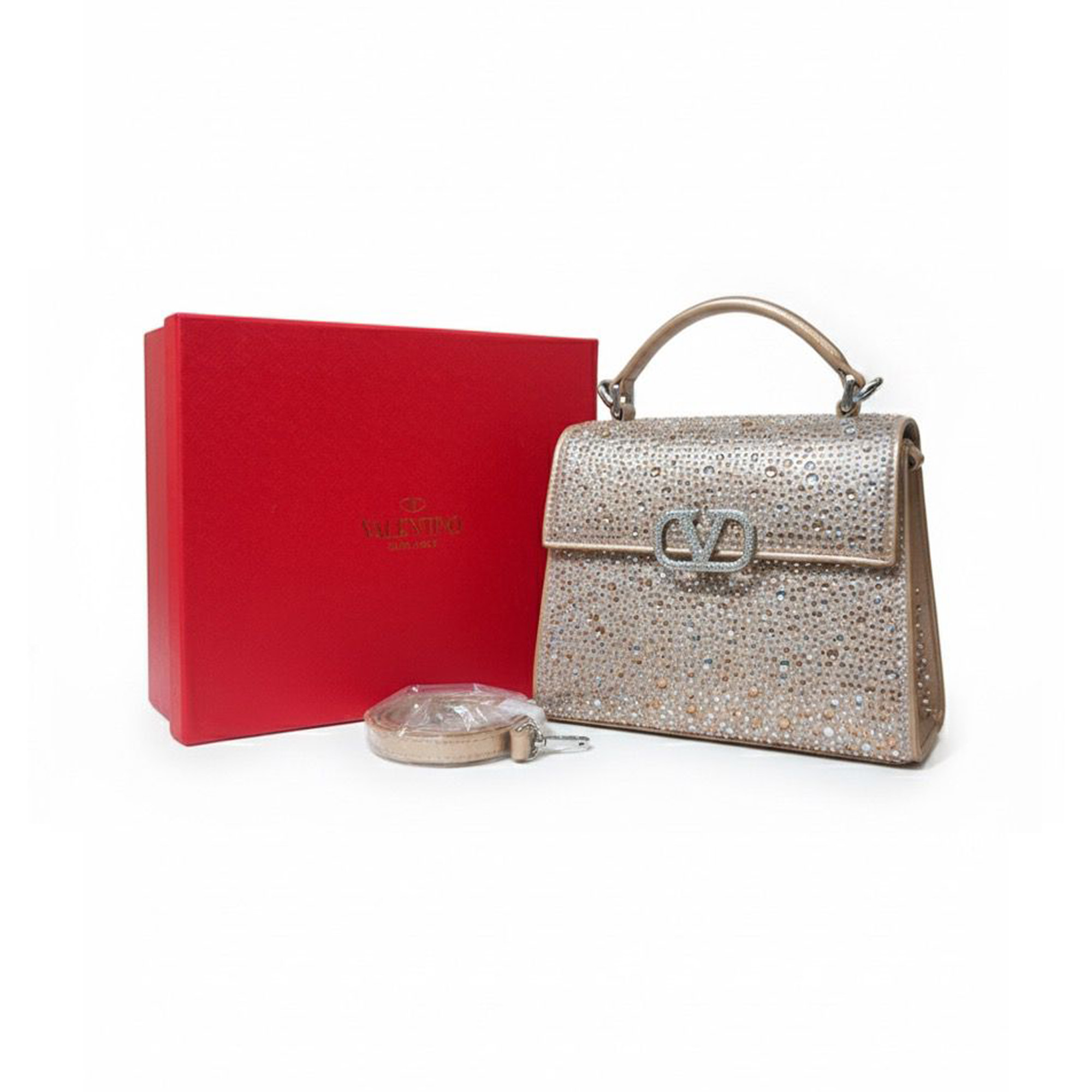 Feature: Signature gold-tone V-logo buckle with crystal detailing